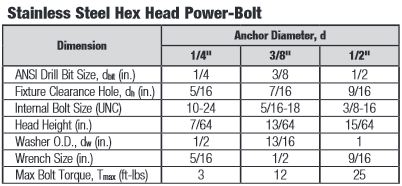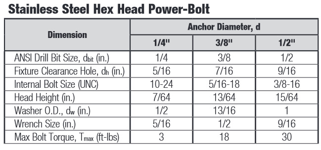 Here's the specs from 2006: I have the whole 12-page PDF spec sheet from then if anyone is interested. It starts off with: "The Power-Bolt anchor, formerly known as the Rawl-bolt,...." |
