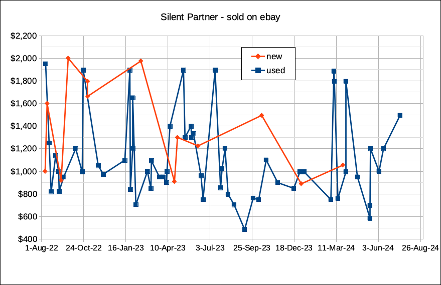 No, the price is $900 + shipping. If you're not interested that's fine. I'm not counting on it selling here but sometimes SPs do. And it's free to try. Ebay tacks on a fee of about 13% which means I'd ask for over $1000 there. Plus most buyers have to pay sales tax as well. So on ebay the same device would cost something closer to $1100 + shipping. Most likely my Silent Partner will simply gather dust in my closet. But it's here, if there's someone who really wants it. |