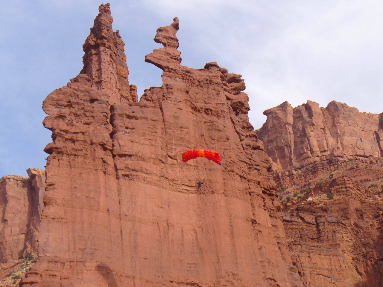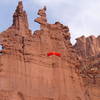 “Mario descending from the corkscrew summit. That previous photo Cameron is Jimmy P, not me, and as you know its after a leap from the rim above all the towers and 2000' above the parking area. Cheers, where is your new FA in the system bro?”