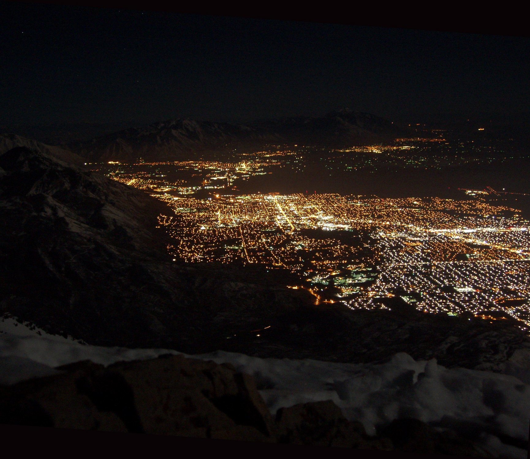 “View of Orem/Provo under a full moon from the summit of Everest Ridge.”