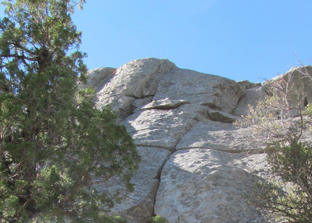 “Drunken Climber, or Drunken Cowboy, is the thin, left hand crack ending right of the round knob.”