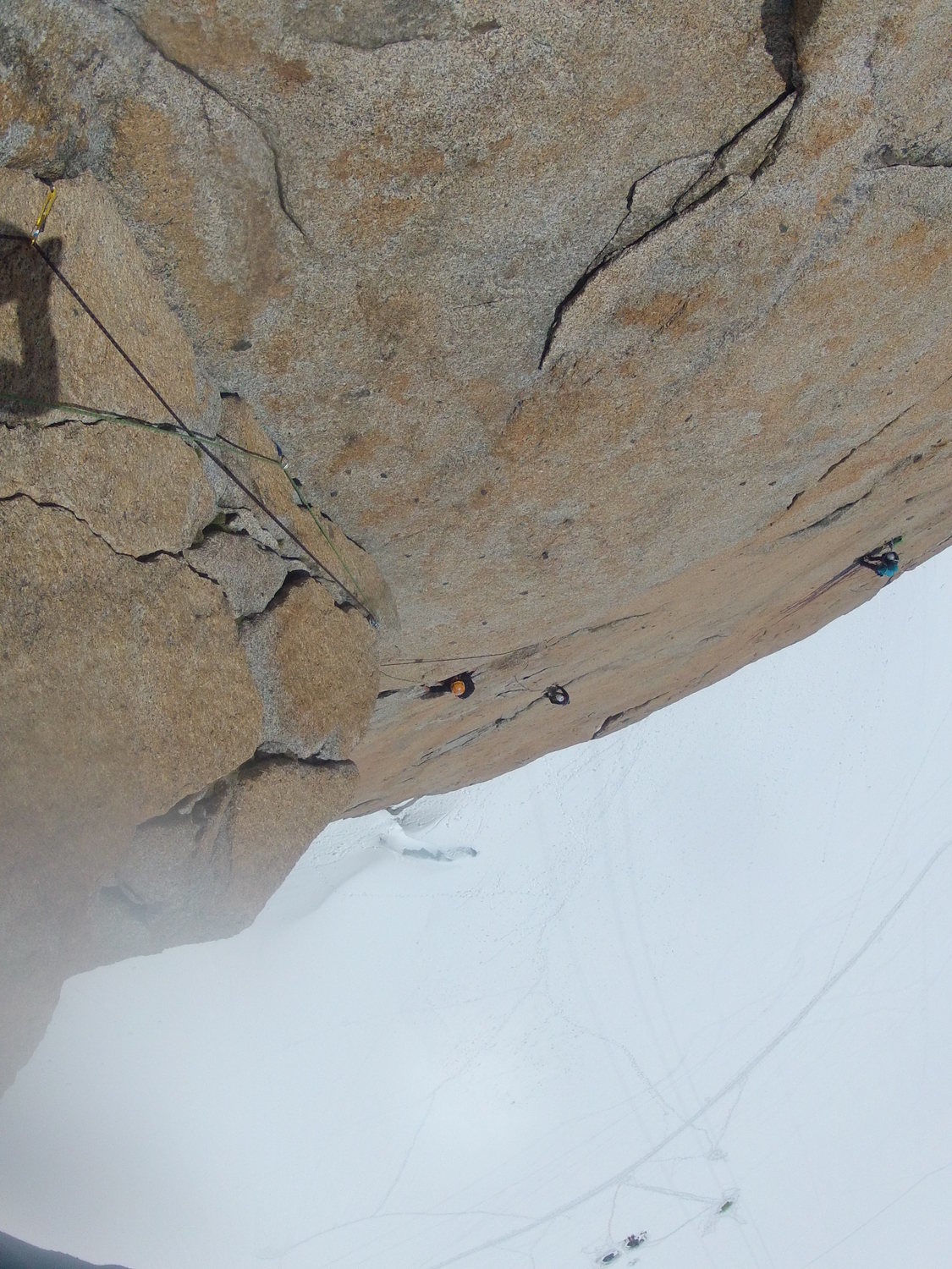 “Climbers on Pitch 3 & 4 of the Voie Rébuffat-Baquet (photo taken at top of pitch 4 having linked pitches 3 & 4). ”