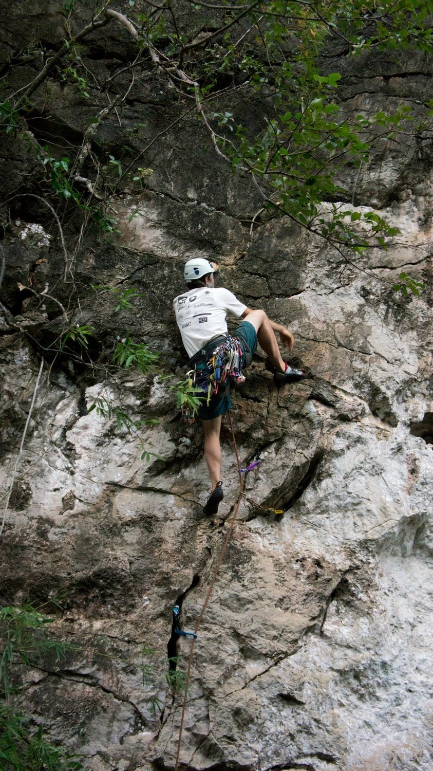 “Chris Kreutzer on the first assent of Nice to Meet Au, Photo taken by Zizhuang Yang”