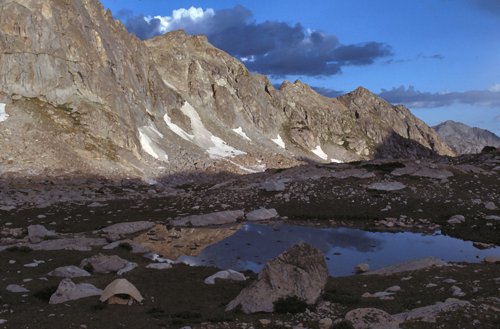 Over the years, I've become more fond of approaching climbs above Deep Lake by way of Rapid Creek. But on this occasion I think Gus and I took the std 'Little Sandy Trail' and setup